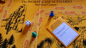 Při jízdě na sever nás doprovázel silný vítr, takže jsme poněkud dříve zakotvili v teple našeho dalšího ubytování. Zašli jsme si do hotelového historického salónku, kde jsme si zahráli hru Worse Case Scenario: Survival Game. Připadali jsme si trošku, že hrajeme Jumanji, protože jsme netušili, co na nás hra v dalším tahu sešle za pohromu. Vyzkouším vás: Co byste dělali v případě, že na vás zautočí hejno divokých útočných včel. Poradím, že utíkat vám v tomto případě moc nepomůže 🙂