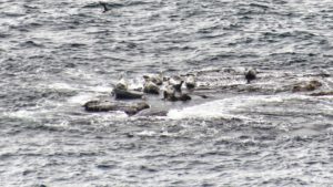 Dorazili jsme k útesu, který byl útočištěm desítek tisíc ptáků – buřňáků, racků, alek a spousty dalších. Podobné scenérie člověk zná jen z přírodopisných dokumentů. Úžasné bylo poslouchat stovky ptačích hlasů, jež se snažili mezi sebou vzájemně komunikovat. Na útesu měli být také skrytí papuchalkové – malí tučňákoidní ptáci s výrazně oranžovýms nohama a zobákem. Bohužel útes byl od nás velmi daleko, a tak nebylo snadné mezi sebou jednotlivé druhy rozpoznat. Snažili jsme se koukat s maximálním optickým zoomem zrcadlovky, ale ani tak se nám nepodařilo žádného zahlédnout. Odcházeli jsme od útesu trošku zklamaní, protože jsme neviděli puffiny. Zbýval nám tedy aspoň tuleň.